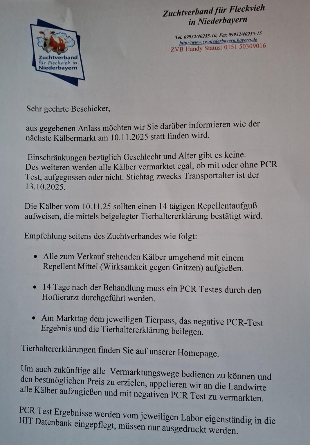 Die nächste Zuchtviehversteigerung findet in Osterhofen am Mittwoch, den 08. November 2023 statt.