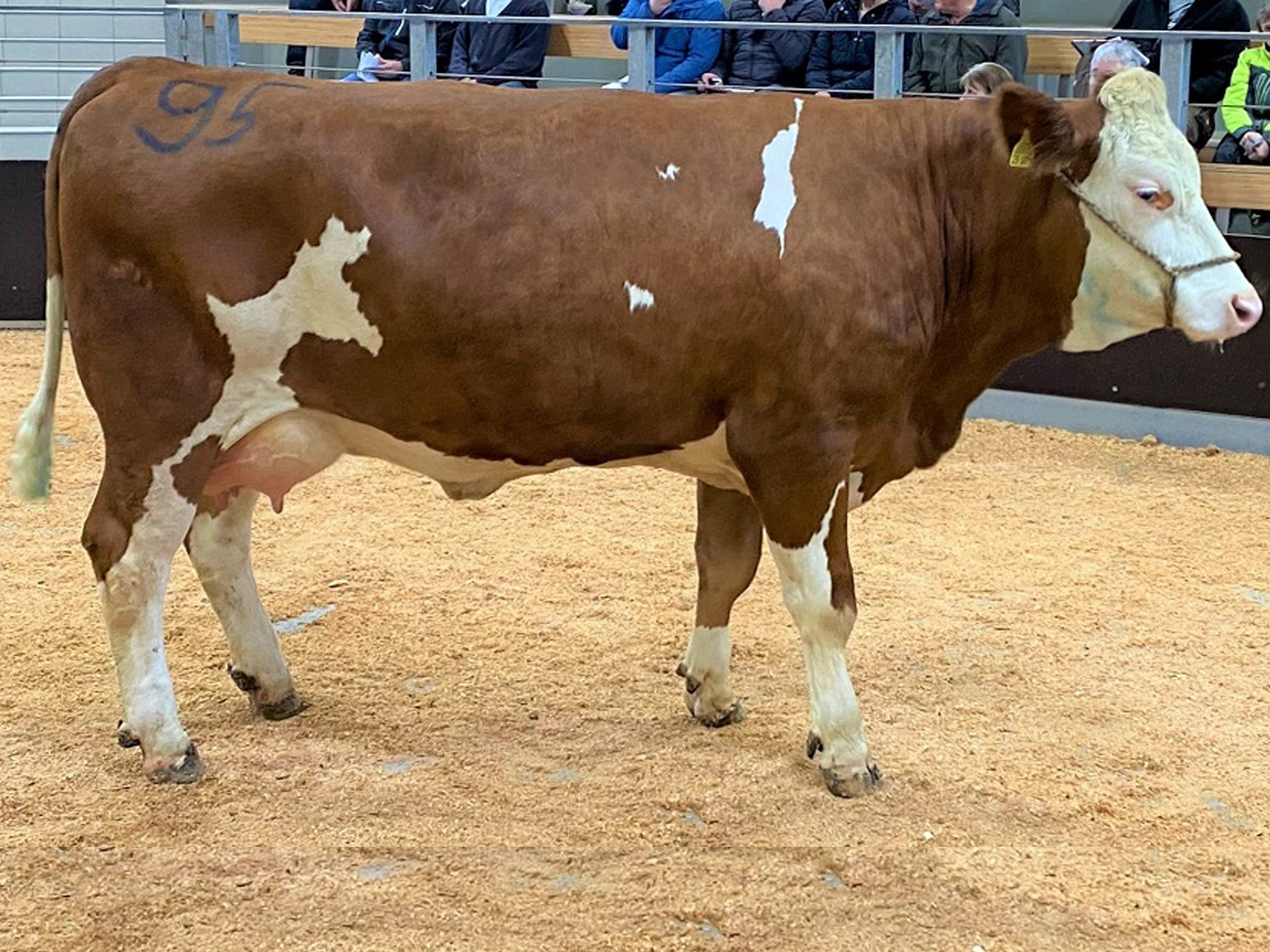 Auch die 7 Kühe mit zwei bis drei Kalbungen waren sehr gefragt, überzeugten sie doch mit einer enormen durchschnittlichen Tagesmilchmenge von 36,5 kg. Dies wurde mit einem hohen mittleren Preis von 2.711 € honoriert.