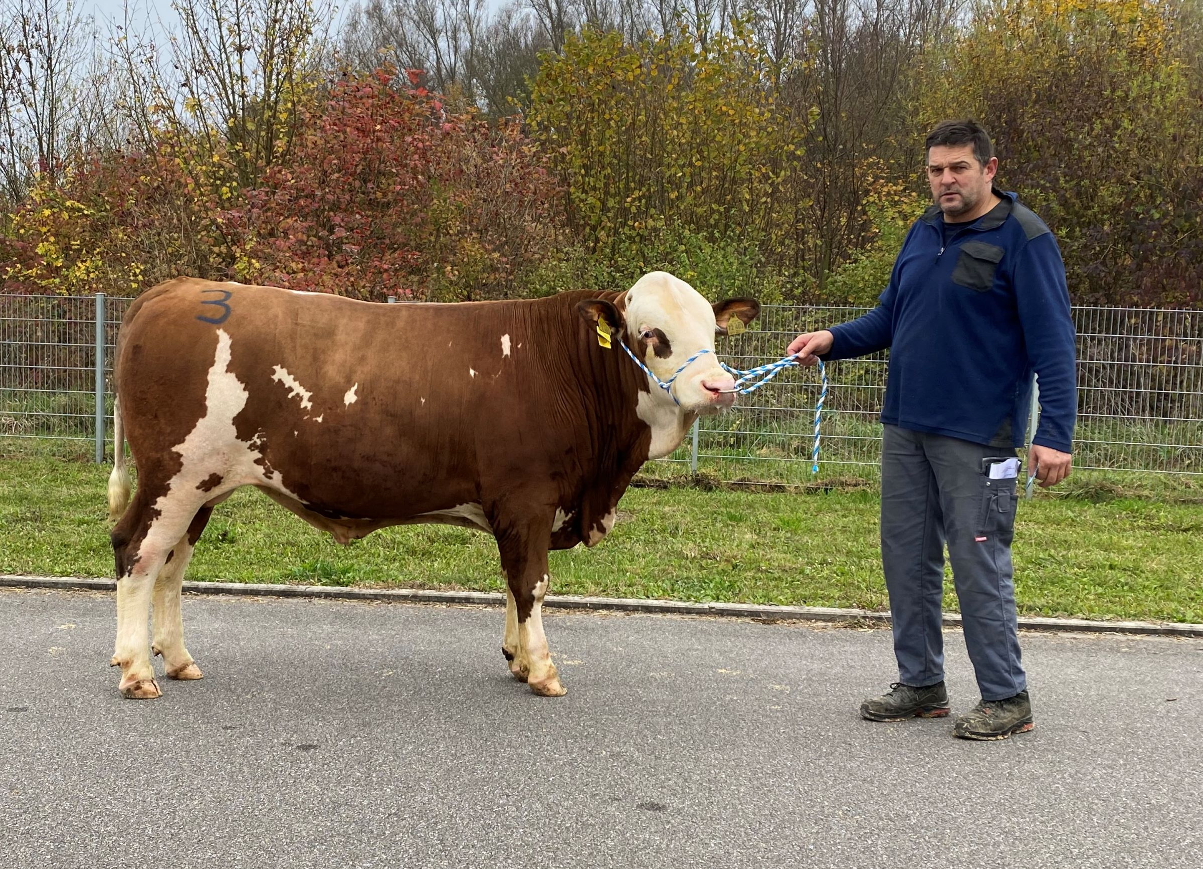 Die Gruppe der 8 vorgestellten Zuchtbullen überzeugte hinsichtlich Exterieur, Abstammung und der Zuchtwerte bei den einzelnen wichtigen Merkmalen. Ein Bulle wurde nicht abgegeben und die restlichen 7 Bullen wurden zum Durchschnittspreis von 3.143 € versteigert. Die Bewertungskommission rangierte den mit 12 Monaten jüngsten Bullen von der Ettl GbR in Eggerszell bei Rattiszell an die Spitze. Dieser mischerbig hornlose Wintergold P*S-Sohn zeigte eine enorme Entwicklung und brachte mit einem Jahr bereits 630 kg auf die Waage, so dass sich Tageszunahmen von 1.630 g errechneten. Bei einem Gesamtzuchtwert von 132 und durchweg überdurchschnittlichen Exterieurzuchtwerten sind weibliche Nachkommen mit korrektem Fundament und Euter zu erwarten. Für diesen Spitzenbullen wurde mit 3.800 € auch der Höchstpreis des letzten Jahres für einen Natursprungbullen geboten.